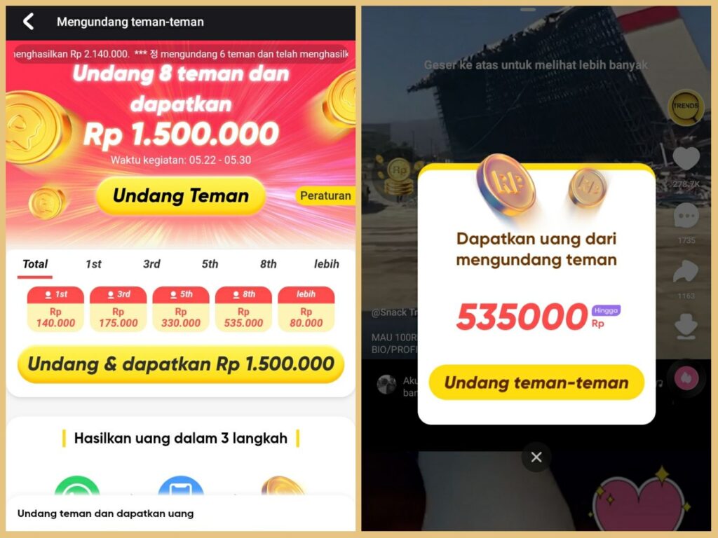 Itulah cara menghasilkan uang snack video dengan cepat, dan pada intinya kalian bisa . Kalian juga uplod video agar mendapat tambahan koin. Buka aplikasi snack video, ke ke mode klik logo kuning bergambar peti atau rp · lakukan check in setiap hari untuk mengumpulkan koin yang didapat . Terakhir, undang teman untuk install aplikasi snack video agar koin cepat bertambah dan bisa di tukar . Ajak teman untuk install aplikasi snack video · 2. #snack video apk #koin snack video #cara mengundang teman di . Tiap 50 koin setara dengan rp1. Ini cara mudah mendapatkan uang jutaan rupiah melalui aplikasi snack. · tap simbol 'rekam', lalu mulai . Cara menggunakan aplikasi snack video · buka aplikasi snack video. · tap ikon plus di barisan menu paling tengah. Koin akan secara otomatis ditukarkan dengan uang sebelum pukul 8 pagi pada keesokan harinya. Nilai tukar koin snack video.