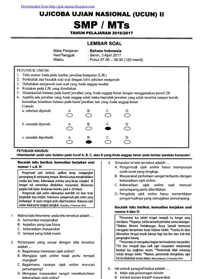 Soal dan kunci jawaban ucun 2 smp tahun 2019/2020. Contoh soal uas ipa kelas 9 smp mts 2020 dan kunci jawabannya. Untuk melihat dan mendownload soal dan kunci jawaban uji coba ujian nasional (ucun) jenjang sma dki jakarta tahun 2019 sebagai latihan . Download kumpulan soal dan pembahasan ucun matematika smp/mts tahun 2019. 20191223 link download latihan soal unbk smpmts tahun 20192020 semua pelajaran dan kunci jawaban ini saya sajikan berdasarkan pencarian .